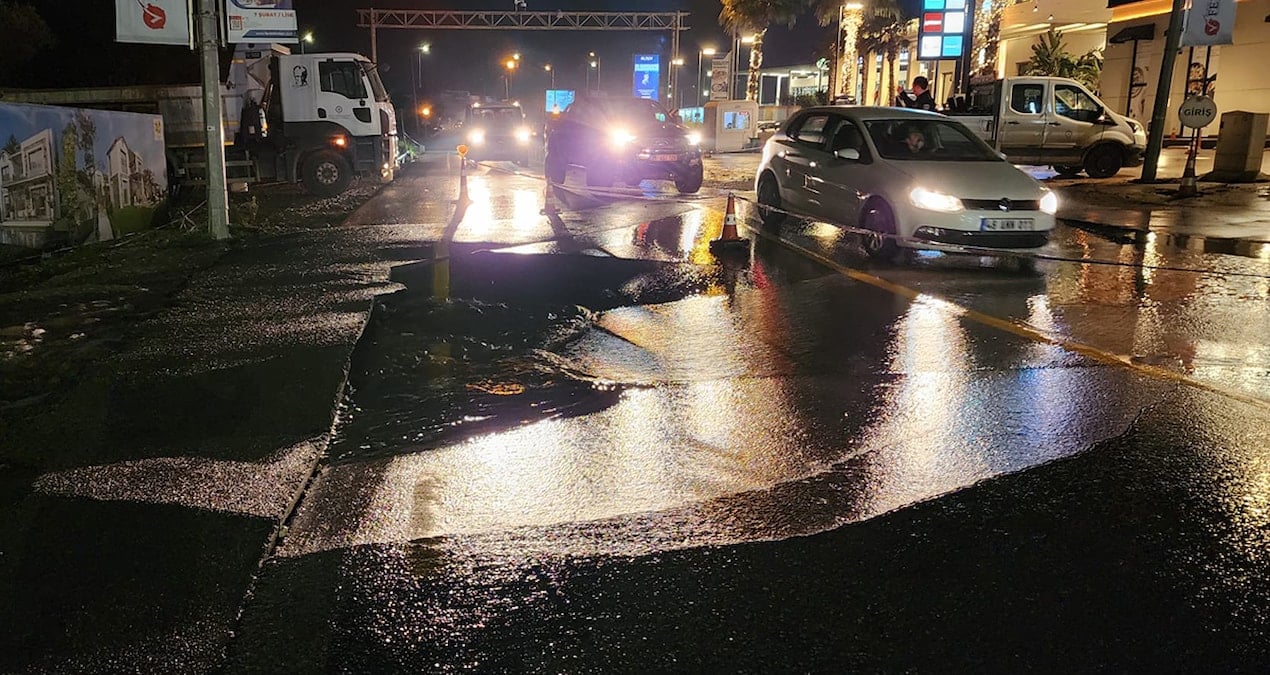 Muğla’nın Bodrum ilçesinde bu akşam saatlerinde su isale hattında meydana gelen patlama caddeyi ikiye ayırdı. Tonlarca su boşa aktı.