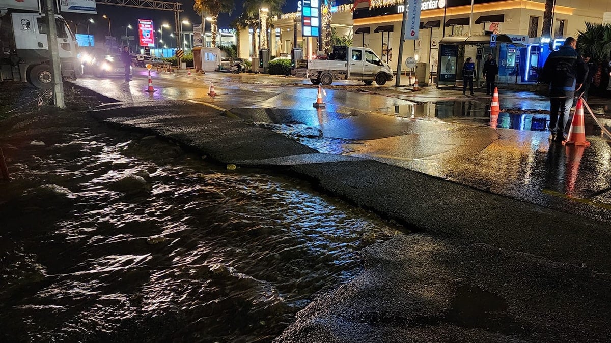Muğla’nın Bodrum ilçesine bağlı Torba Mahallesi Rıza Anter Caddesi’nde bu akşam saatlerinde ana su isale hattında patlama meydana geldi. Tonlarca su cadde ve sokaklara akarken, caddenin ortasında geniş çukurlar ve yarıklar oluştu.