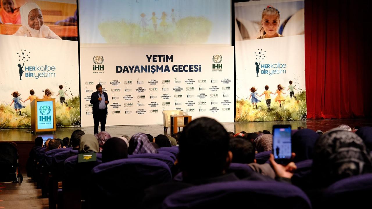 Kur’an-ı Kerim tilavetiyle başlayan programın açılış konuşmasını İHH Bursa Şubesi Başkan Vekili Burhan Sayılgan yaptı. Yetimlere yönelik çalışmaların İHH’nın en önemli çalışma alanlarından biri olduğunu vurgulayan Sayılgan, “Her kalp bir yetime sahip çıkarsa, dünyamız çok daha merhametli bir yer olacaktır. Çocuklarımızı organ mafyalarının, kötü niyetli insanların, uyuşturucunun, misyoner çalışmalarının bataklığından kurtaralım ki dünya daha güzel bir hale gelsin” dedi.