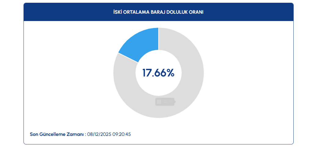 İSKİ tarafından açıklanan verilere göre, son yağışlar barajlardaki doluluk seviyesini yüzde 0.54 puan artırdı. Böylece oran, önceki gün yüzde 17.12 iken dün itibarıyla yüzde 17.66’ya yükseldi. Doluluk oranları artışa rağmen hâlâ yüzde 20 seviyesinin altında bulunuyor.
