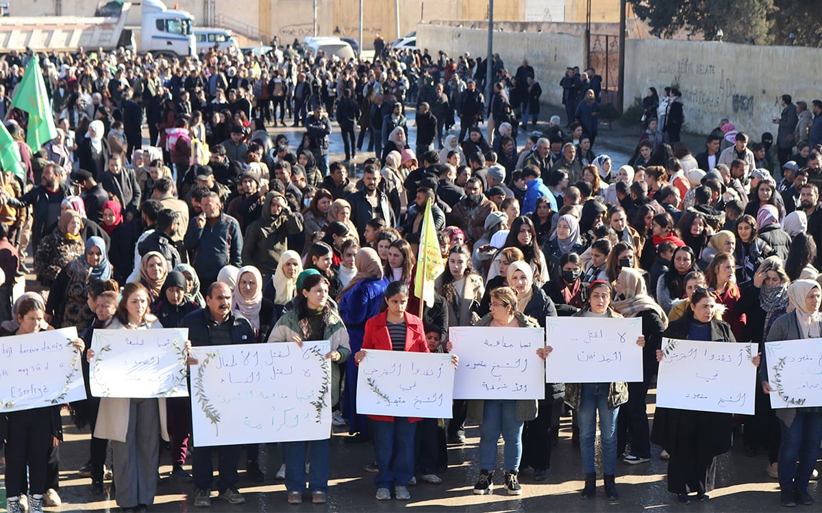 *Kobanî’de Şeyh Maksut ve Eşrefiye halkıyla dayanışma eylemi, 10 Ocak 2026. (Fotoğraf: North Press Agency)
