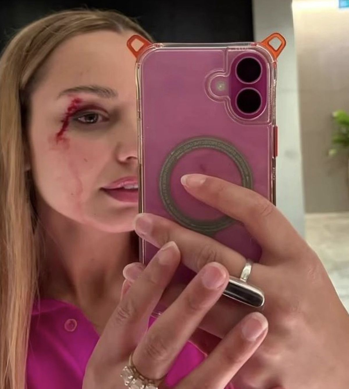 Muhabir Jessica Tyson, kaşının altından yaralandı.